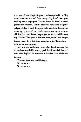 "A riveting plot and unforgettable characters make a winning combination. Tomorrow will keep you up tonight, turning the pages!" -- Libby Lazewnik
