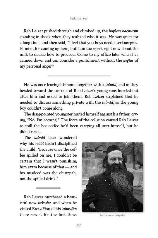 Rabbi Yisroel Besser, bestselling author of Reb Shlomo -- The Life and Legacy of Rabbi Shlomo Freifeld, has once again given the world a precious glimpse into the life a truly unique man. Reb Leizer had an impact on anyone fortunate enough to come into contact with him -- silent ones found their voice, listless ones learned to dance. Reb Leizer passed away tragically at a young age, but in the pages of this book he lives again! This is a manual for all who seek to address life vibrantly, relevantly, and courageously. It will bring sparks of Reb Leizer into your world, where they will create a roaring fire, one that will illuminate your life and change the way you see yourself, and those around you.
