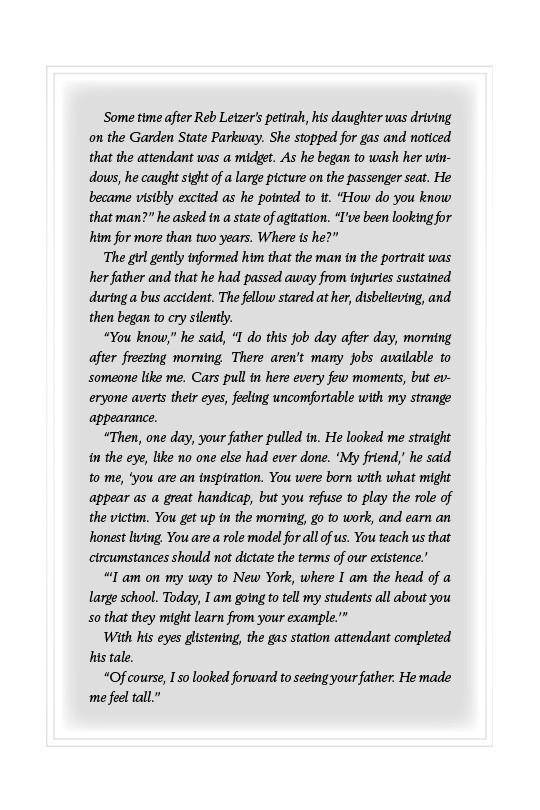 He was at once intellectual and blazingly fervent, charismatic and unassuming, demanding and tolerant, serious and funny. He was unconventional and, while always appropriate ... unpredictable. Heir to his grandfather's Kelm mussar and a product of a Brisker education, he also internalized the light and depth of chassidus, fusing many holy paths within his vast heart.