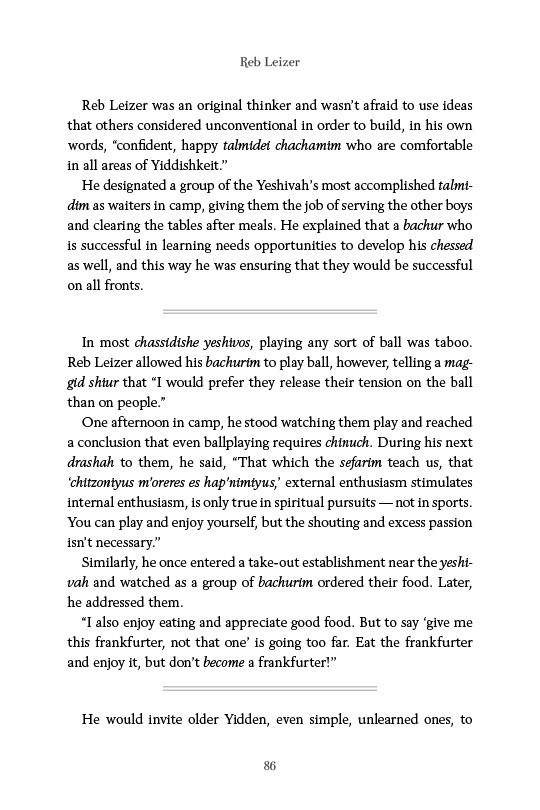 Reb Leizer built a world-class yeshivah while still a young man, opening up a new world to chassidishe bachurim that offered them the penetrating lomdus of the yeshivah world while fiercely safeguarding their mesorah. He challenged them to grow and made their spirits soar, but most important of all ... he gave them dreams.