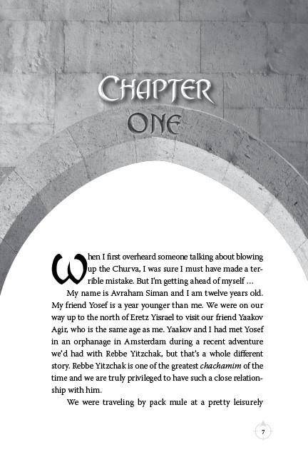 The dust has barely settled from Avraham Siman's last adventure when he and his friends stumble upon a sinister plot to destroy the beautiful new Churva shul in Yerushalayim. But questions abound: Is the plot real, or just the wild imaginings of their adventurous minds? If it is real, who's behind it? Abu Rash, the Arab gang-leader who is supposedly sitting in a Turkish prison? The crazy seer, who suddenly reappears in the heart of the Holy City? Or perhaps someone else -- someone they don't even suspect ...