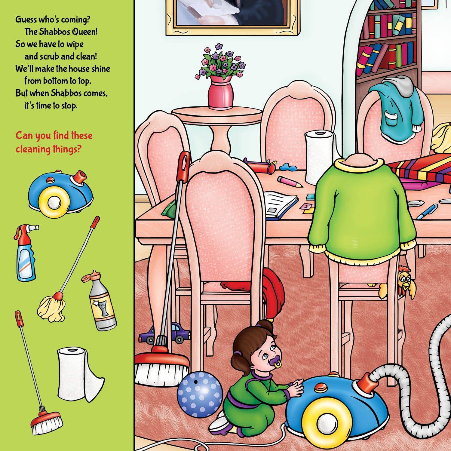 Simple picture clues and gentle rhymes take your toddler or preschooler on a delightful journey through Shabbos!