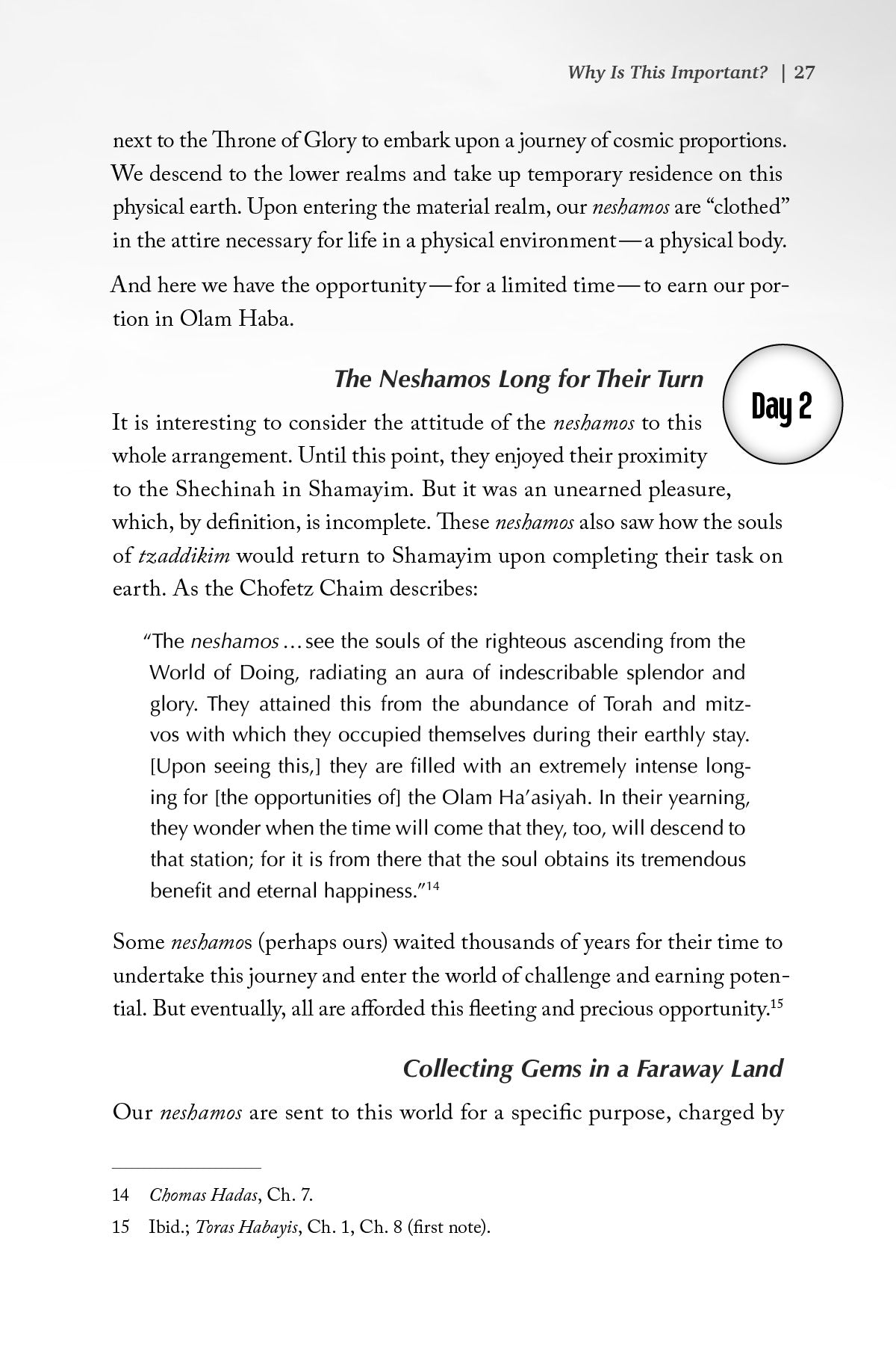 This powerful and eye-opening book urges us to restore Olam Haba to the center of our consciousness. With vivid parables, timeless Torah sources, and deeply practical insight, Living With Olam Haba shows how cultivating an awareness of the Next World transforms everything: our priorities, our struggles, our joys, and our connection to Hashem.