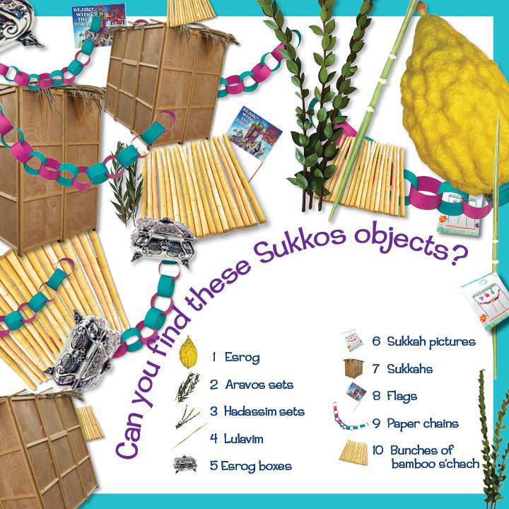 Here's a great way for kids to learn about the yomim tovim (holidays) and have fun at the same time! On each big, beautiful page, they can search and find objects connected to each yom tov as they count from 1 to 10! Then, at the end, they can test their smarts as they match up each object with its yom tov.