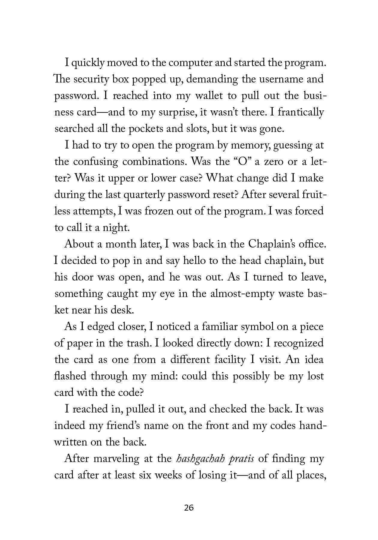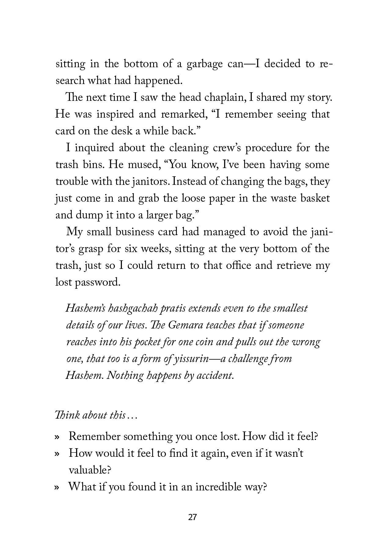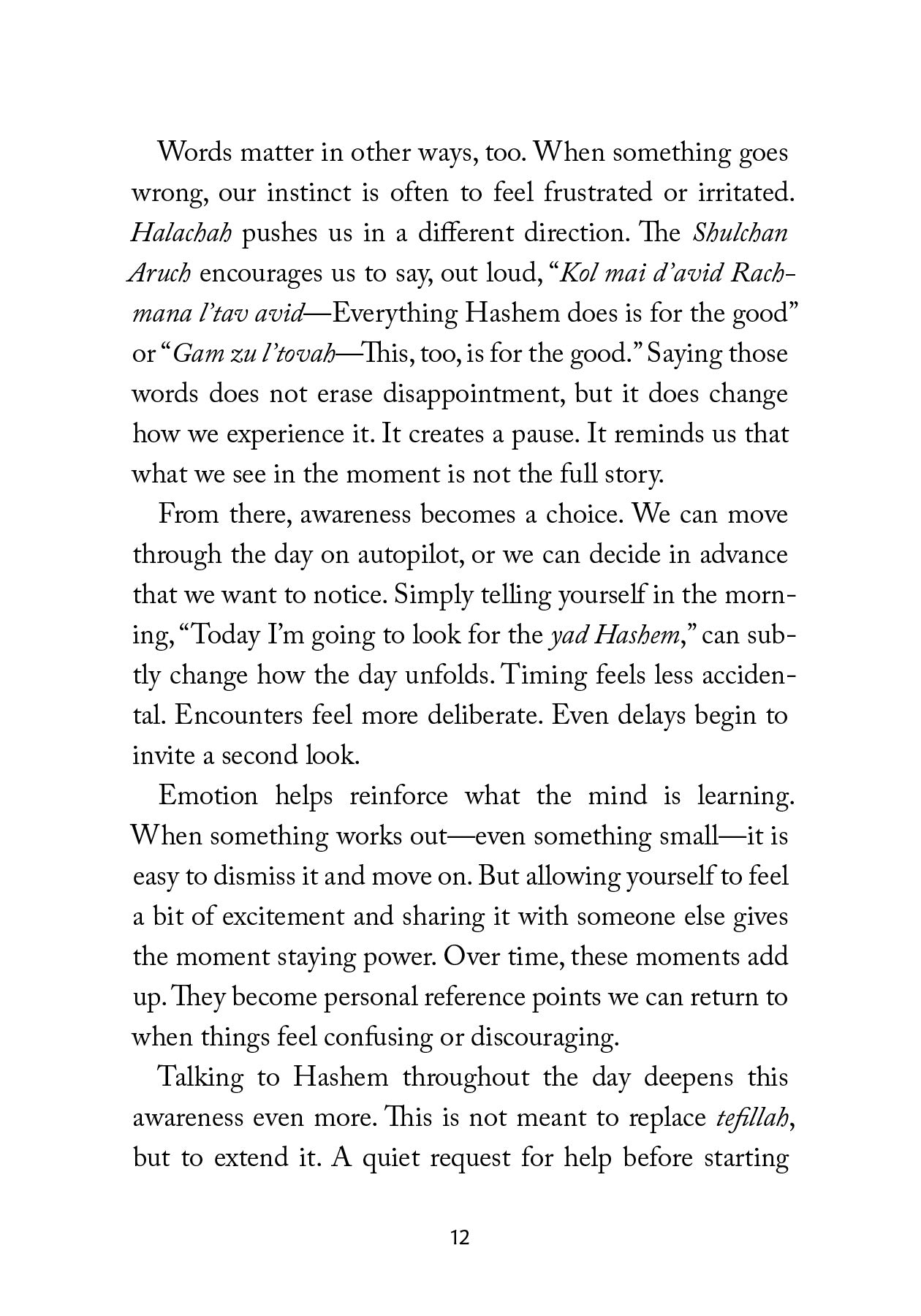 This book isn’t about perfect endings. It’s about discovering that Hashem is already present in the ordinary moments of our lives -- and learning to notice that presence more clearly, until we begin to see that nothing is ever random.