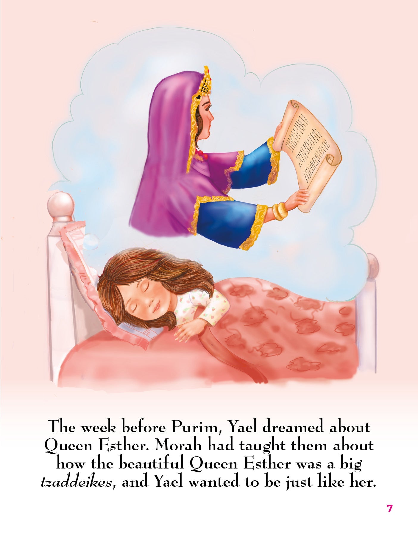 Yael is very excited to dress up as Queen Esther on Purim. When the day finally arrives, Yael feels so special in her costume and spends her day doing so many wonderful mitzvos. She wishes she could be Queen Esther every day! Join Yael as she learns that as a Bas Melech, she truly is a princess -- every day!