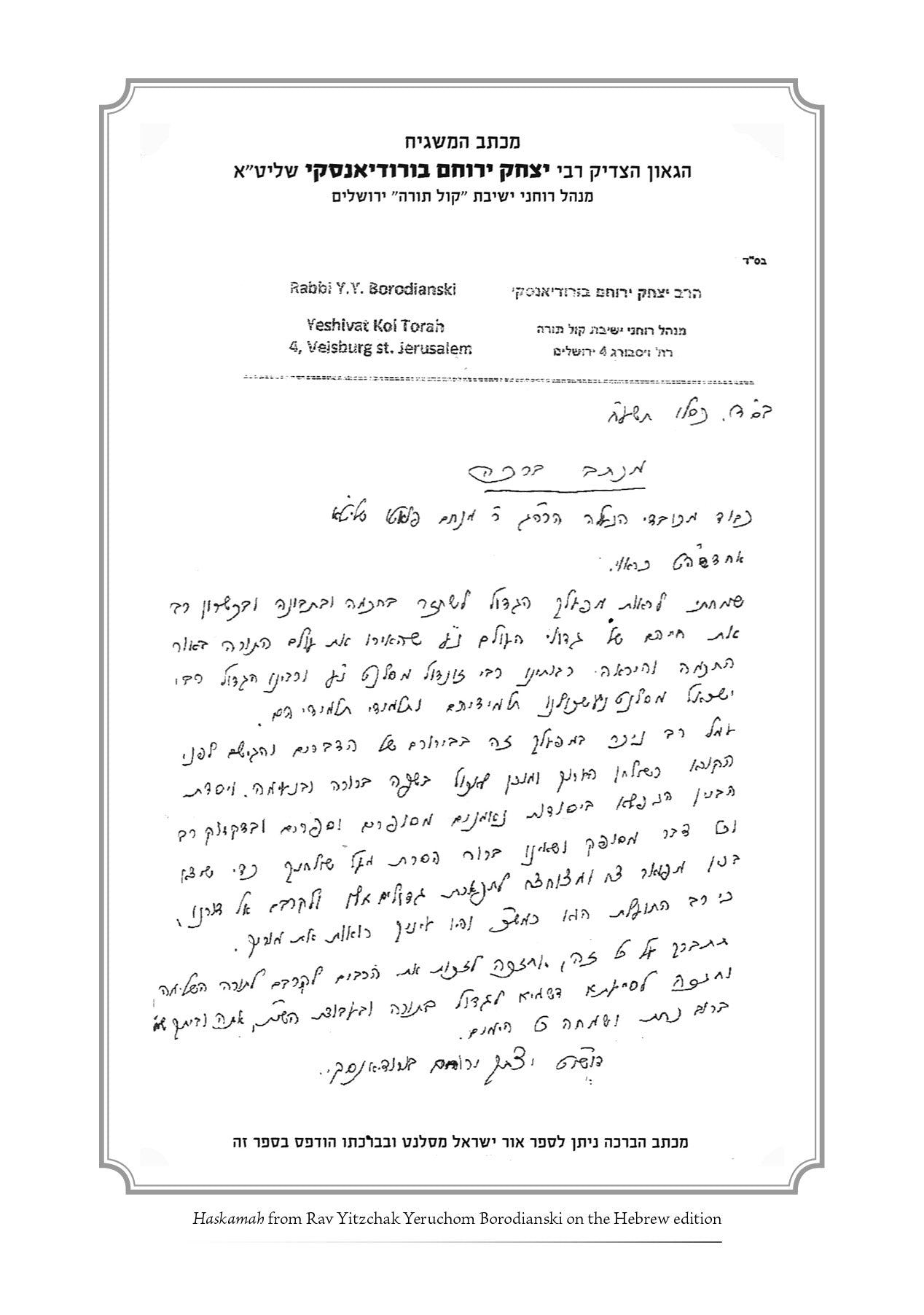 From the Hebrew book HaMashgiach by Rav Menachem Mendel Plato