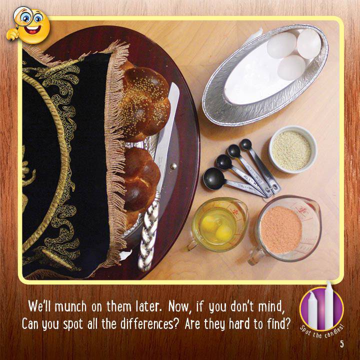 BONUS CHALLENGE-- Two little Shabbos candles are hiding in each right-hand photo, as well! Can you find them?