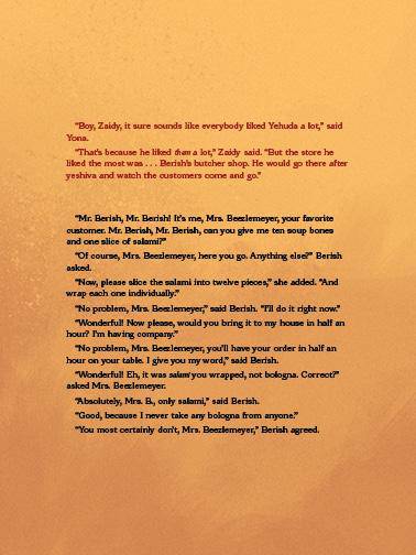 When Berish the butcher is thrown in prison for a crime he did not commit, all the Jews in Prague try their best to save him. But no one knows what to do. No one, that is, except young Yehuda Lowey, the son of the Chief Rabbi of Prague. Yehuda has a great idea to save Berish.