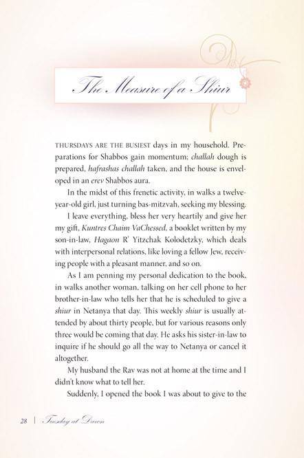 For those who knew Rebbetzin Kanievsky, and especially for those who didn't, Tuesday at Dawn will bring her words to life once again, and inspire readers of all ages.